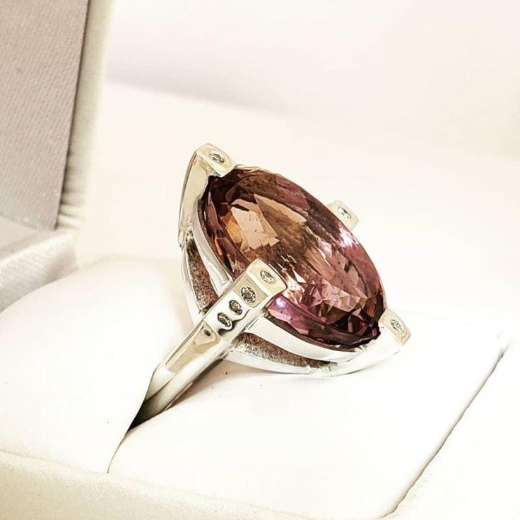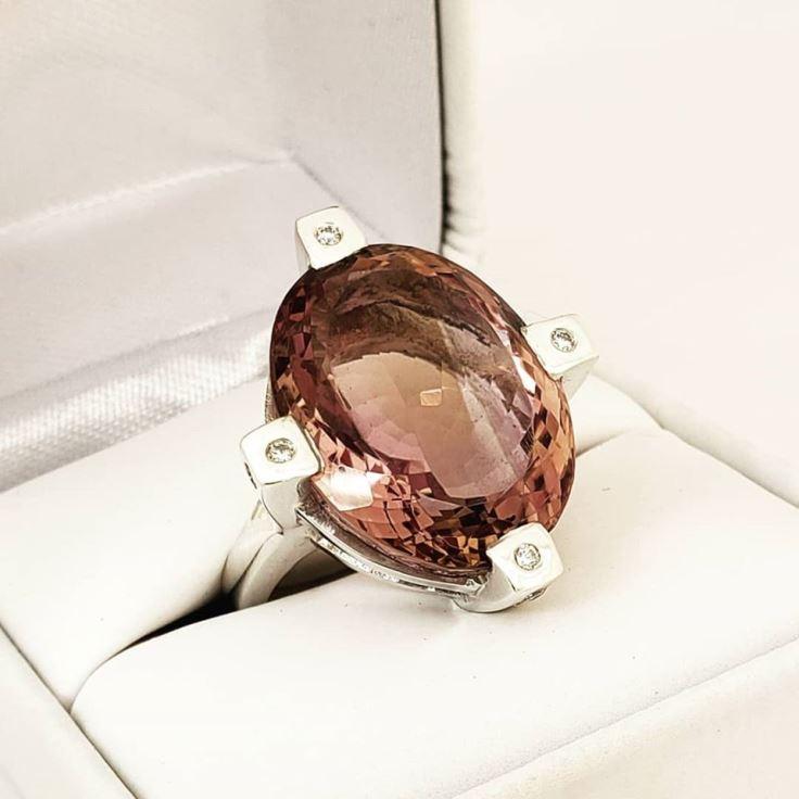 This is an amazingly fiery hand-made ring with a powerful rare 38ct perfect AAA quality oval Ametrine!